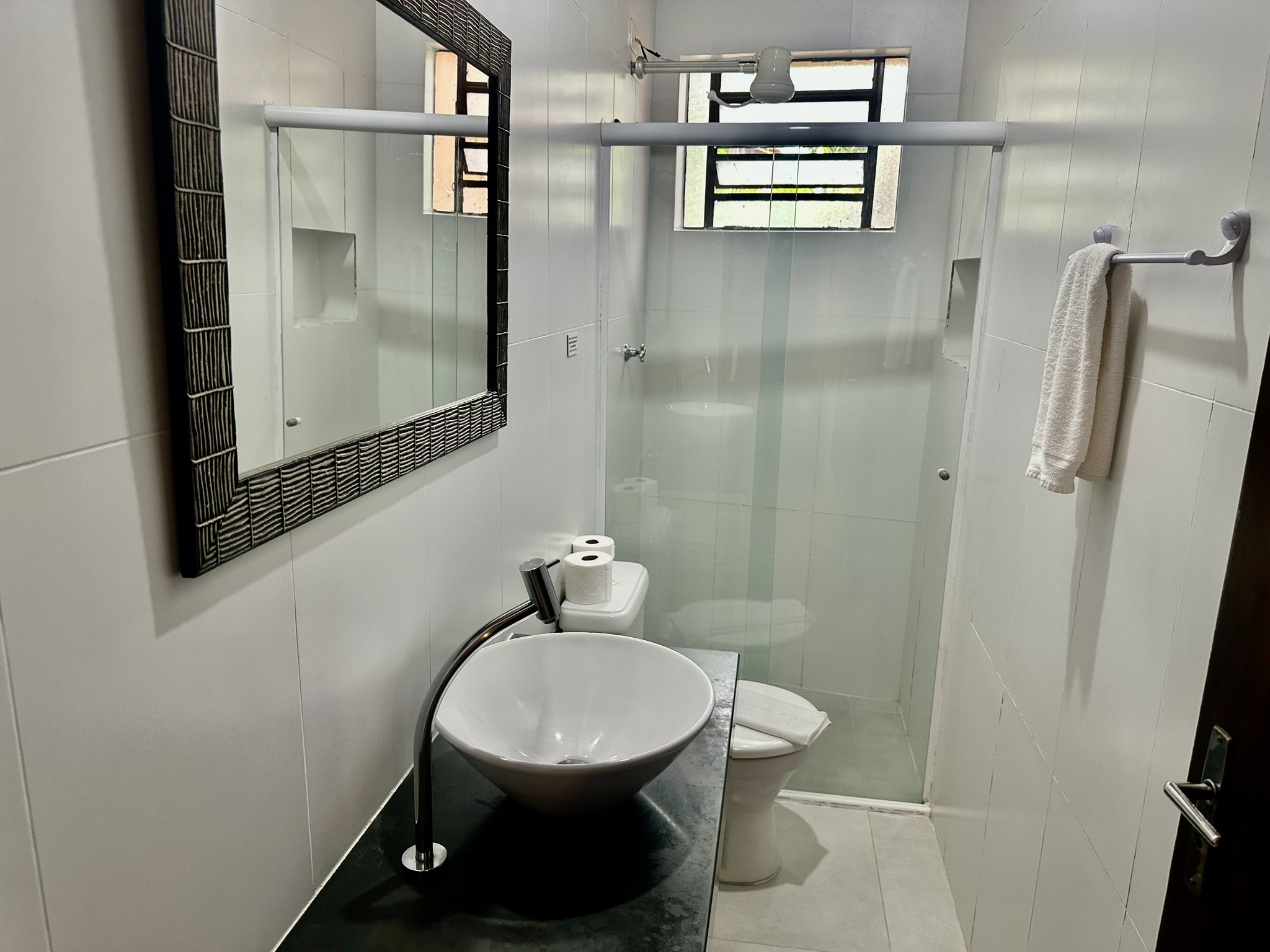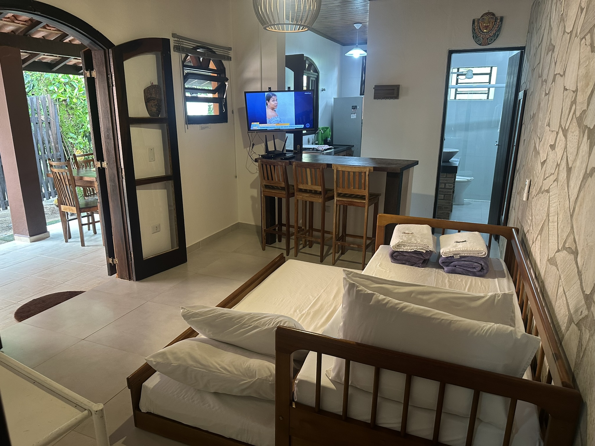 Nosso Chalé Família oferece um espaço amplo e acolhedor, perfeito para quem viaja com crianças ou grupos de amigos. Com uma arquitetura rústica e charmosa, o chalé proporciona privacidade e conforto em meio à natureza. A varanda espaçosa com redes é o convite ideal para relaxar após um dia de praia.